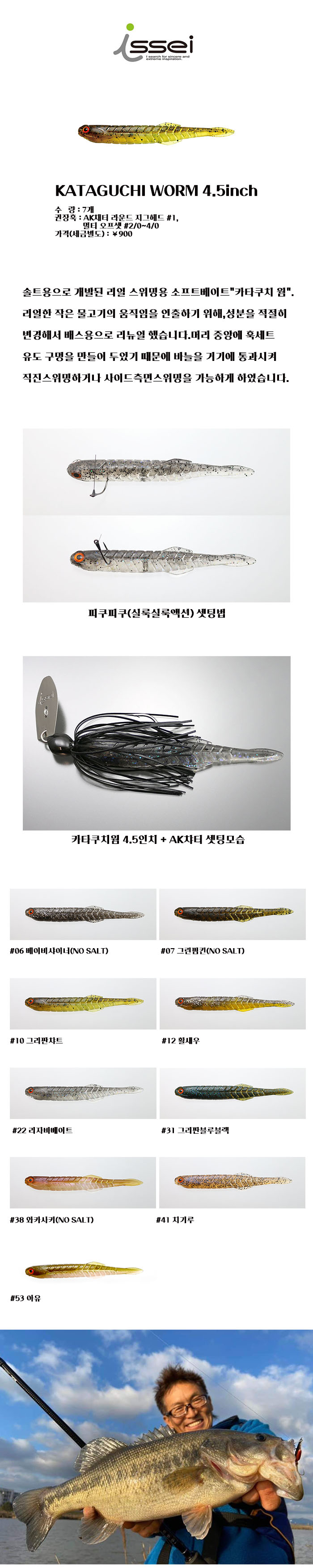 잇세이 카타쿠치 / 4.5인치 소프트루어웜 배스낚시