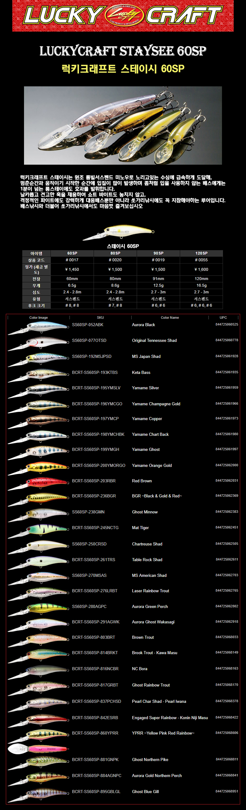 럭키크래프트 스테이시 60SP 하드베이트